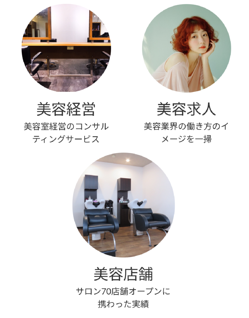 美容業界に革命を起こす為、美容の垣根を超えて幅広く精力的に活動中。主な3つの事業として、